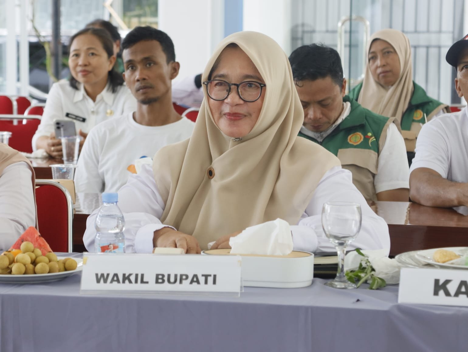 Turut hadir di Aula DISPKP, Plt. Kepala Dinas Pertanian dan Ketahanan Pangan, Subhang, para Kabid DISPKP, Staf DISPKP, Satgas Swasembada Pangan, dan Penyuluh Pertanian. (nor/ikp-humas/kominfo-sp)