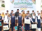 LUWU TIMUR – Bupati Luwu Timur Irwan Bachri Syam menyerahkan bantuan seragam sekolah untuk 16.253 siswa PAUD hingga SMP, termasuk sekolah swasta,