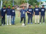 LUWU TIMUR – Menggunakan sepatu berwarna orange, Bupati Ibas tampak harus berlari maju mundur mengejar bola di dalam Lapangan Maesara Village Stadium,