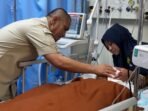 LUWU TIMUR – Bupati Luwu Timur, Irwan Bachri Syam, menjenguk Ashraf (6), korban tenggelam Danau Matano yang tengah menjalani perawatan intensif di