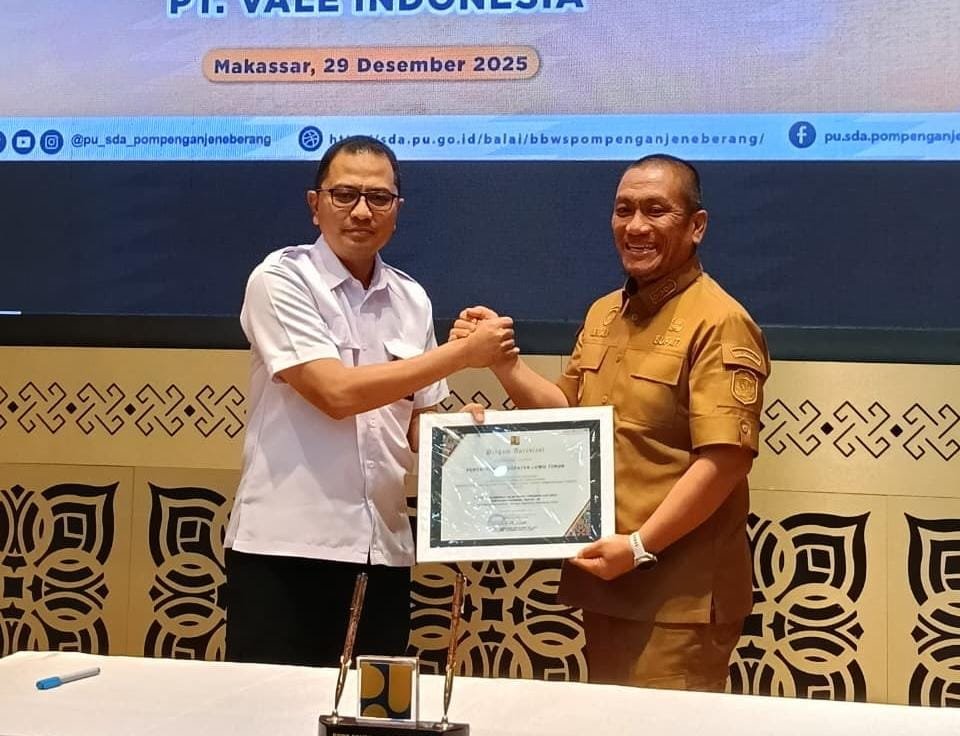 Penandatanganan berlangsung di Aula Bili-Bili Kantor BBWS Pompengan Jeneberang, Makassar, Senin (29/12/2025). Dokumen kerja sama tersebut ditandatangani langsung oleh Bupati Luwu Timur, Irwan Bachri Syam, Kepala BBWS Pompengan Jeneberang, Dr. Heriantono Waluyadi, S.T., M.T., serta Wakil Presiden Direktur PT Vale Indonesia, Tbk., Abu Ashar.