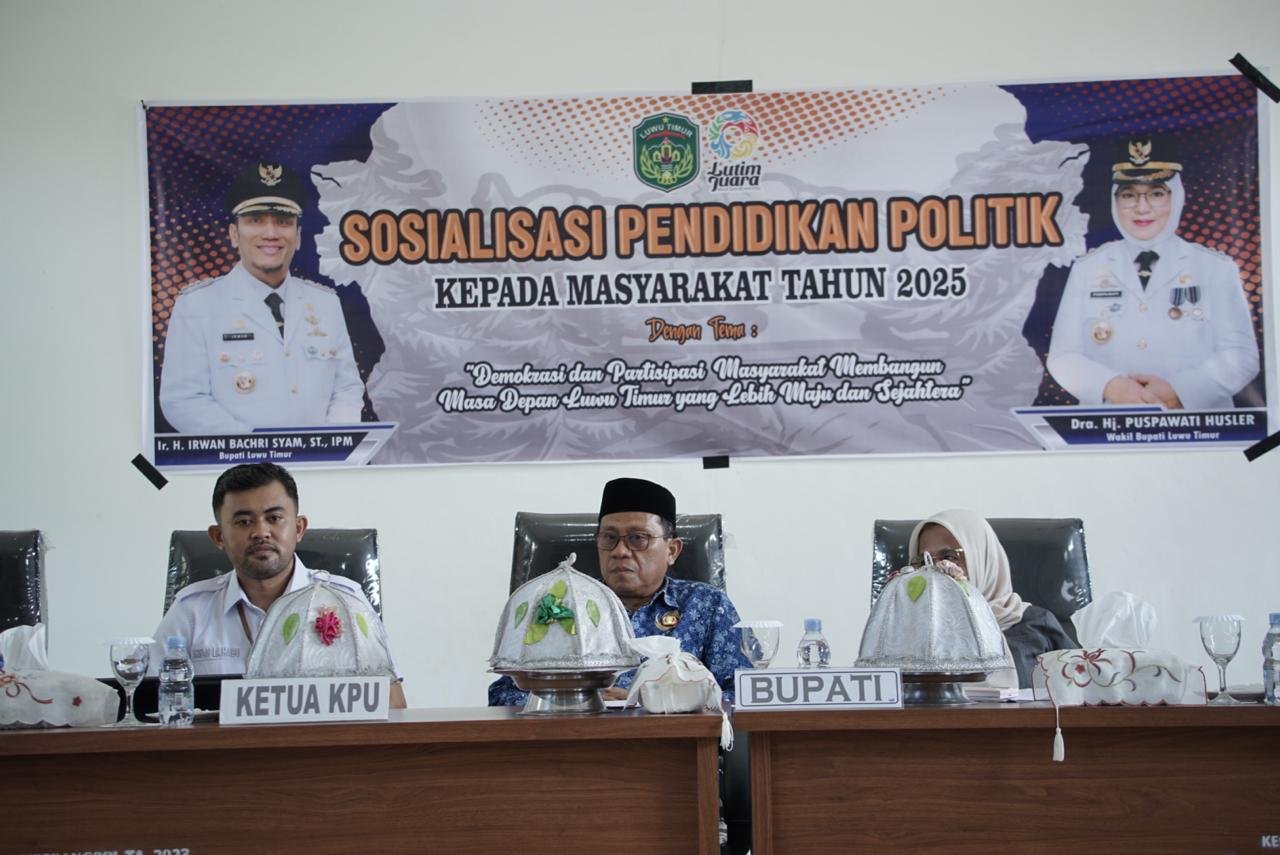 LUWU TIMUR – Penjabat Sekretaris Daerah Luwu Timur, Dr. Ramadhan Pirade, resmi membuka kegiatan Sosialisasi Pendidikan Politik kepada Masyarakat Tahun 2025 yang diselenggarakan oleh Badan Kesatuan Bangsa dan Politik (Kesbangpol).