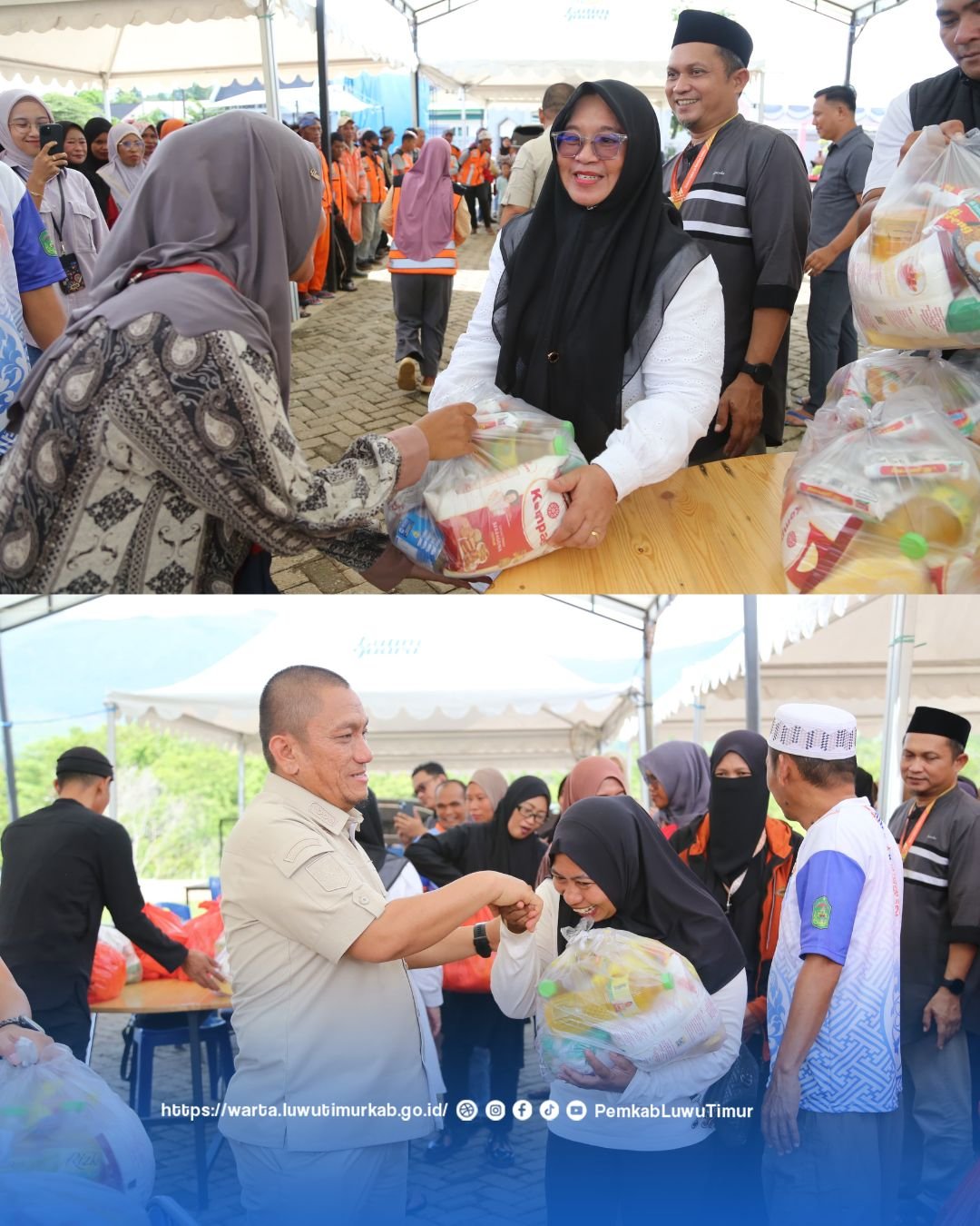 Bupati Luwu Timur, Irwan Bachri Syam bersama Wakil Bupati, Hj. Puspawati Husler, didampingi Kepala Dinas Lingkungan Hidup, Umar Hasan Dalle, menyerahkan langsung bingkisan paket lebaran kepada ratusan petugas kebersihan di bawah naungan Dinas Lingkungan Hidup Kabupaten Luwu Timur.