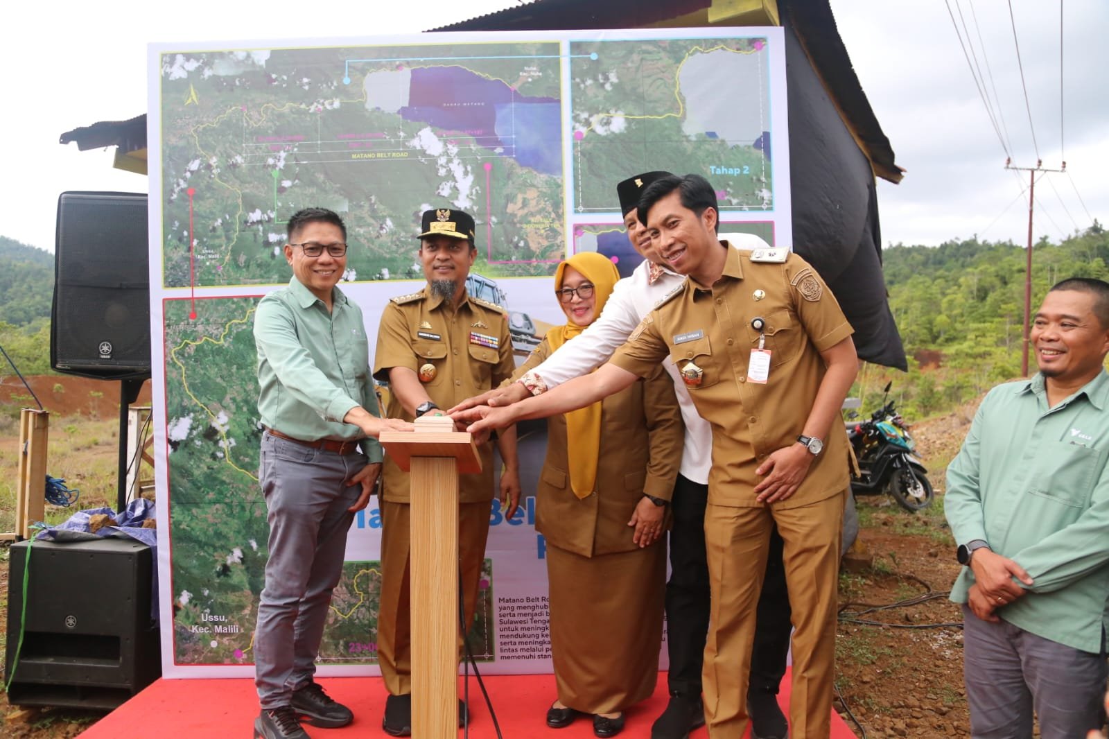 LUWU TIMUR – Wakil Bupati Luwu Timur, Hj. Puspawati Husler, bersama jajaran Pemda Lutim menghadiri Groundbreaking Pembangunan Matano Belt Road (MBR) ruas Ussu–Nuha–Batas Provinsi Sulawesi Tengah sepanjang 35 kilometer, yang digelar di Desa Ussu, Kecamatan Malili, Senin (22/12/2025).