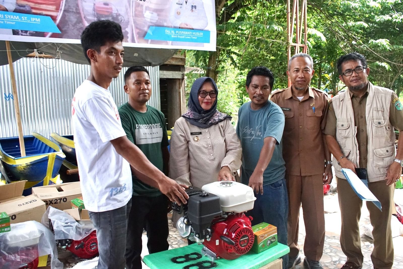 Turut hadir Sekretaris Dinas Perikanan, Heriwanto Manda, Plt. Kepala Dinas Parmudora, Muhammad Safaat DP, Kepala Bagian Forkopim Setdakab Lutim, Agus Thobrani, serta perwakilan dari ketiga kelompok penerima bantuan.